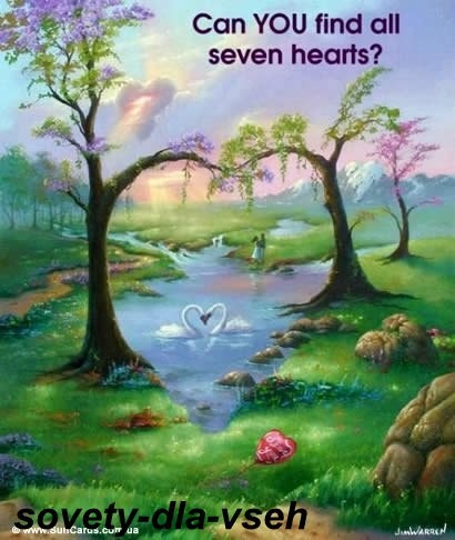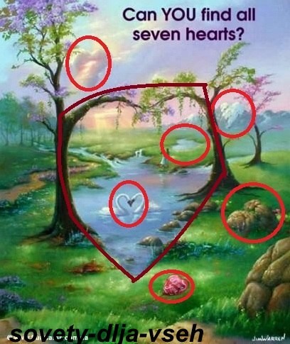 Этот тест предлагает найти 7 сердечек в самой обычной картине природы. Уметь среди очертаний найти определенную форму — важное умение наблюдать.